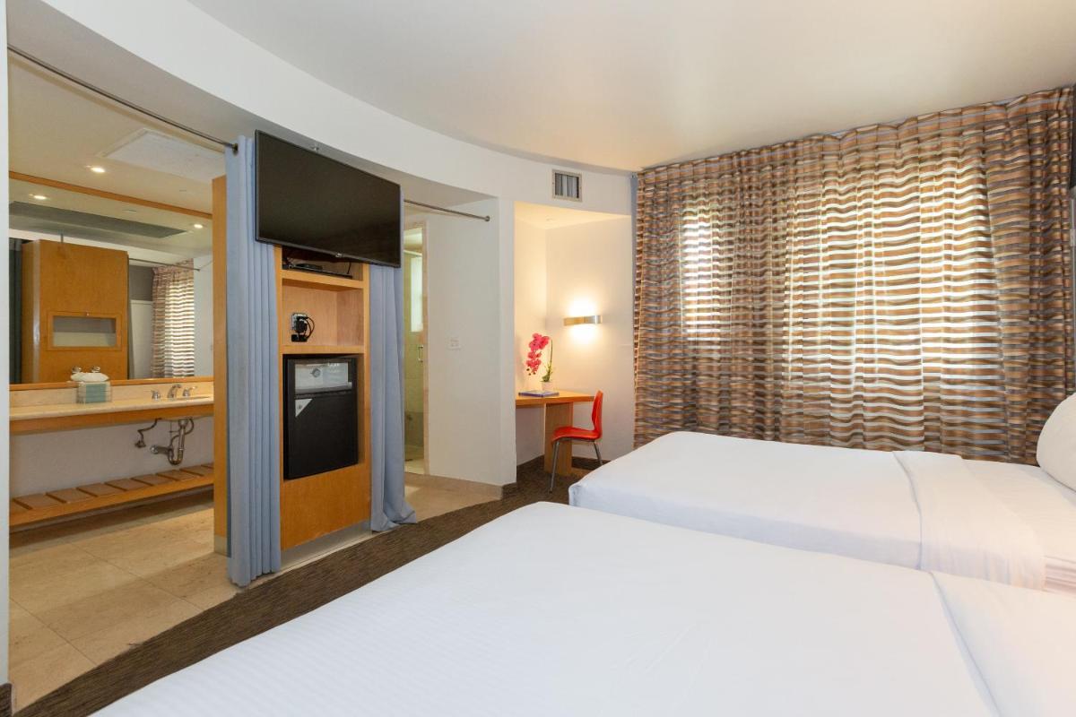 The gallery of St Augustine Hotel Miami Beach highlights its clean design and urban-coastal setting. Guest rooms show modern interiors with neutral tones, accented by simple furnishings that make the most of compact layouts.