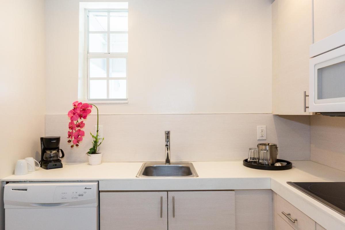 Exterior shots emphasize its location in the South Beach neighborhood, with cultural landmarks and pastel Art Deco façades nearby. The combination of understated interiors and a lively neighborhood setting captures the balance of independence and accessibility this aparthotel provides.